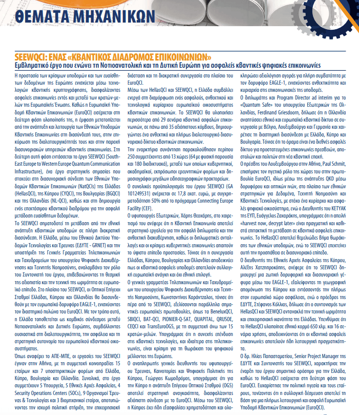 Εμβληματικό έργο που ενώνει τη Νοτιοανατολική και τη Δυτική Ευρώπη για ασφαλείς κβαντικές ψηφιακές επικοινωνίες.
